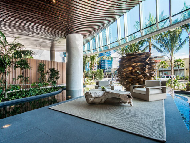 The building Waiea, which translates to “water of life,” was designed in collaboration with James KM Cheng Architects. The building introduces the stories of Hawaiian fishing gods Kū‘ulakai and his son ‘Ai‘ai, along with the genealogy of Kaka‘ako is woven throughout the building’s design. Its most prominent design feature is its sweeping glass facade. It is inspired by the essential life-giving role of water in Kaka‘ako’s landscape and the fishing nets used for sustenance by Hawaiians of both yesterday and today.